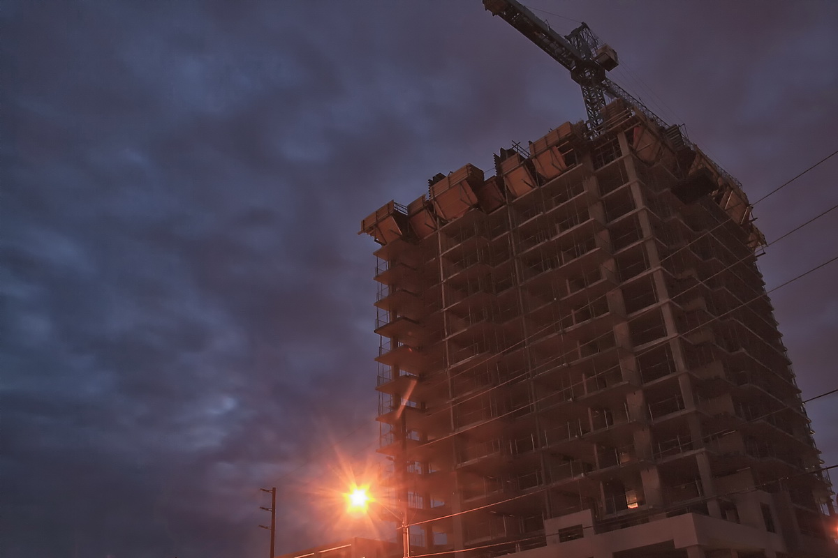 | Now working on floor 14. I took this photo 33 minutes before sunrise. |